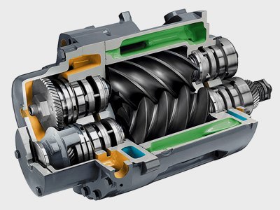 Es la nueva tecnología que busca mejorar como comprimimos el aire. Un compresor a tornillo rotativo funciona mediante dos rotores helicoidales (tornillos macho y hembra) que giran en sentido opuesto. El aire queda atrapado entre ellos y se comprime progresivamente a medida que avanza hacia la salida.
