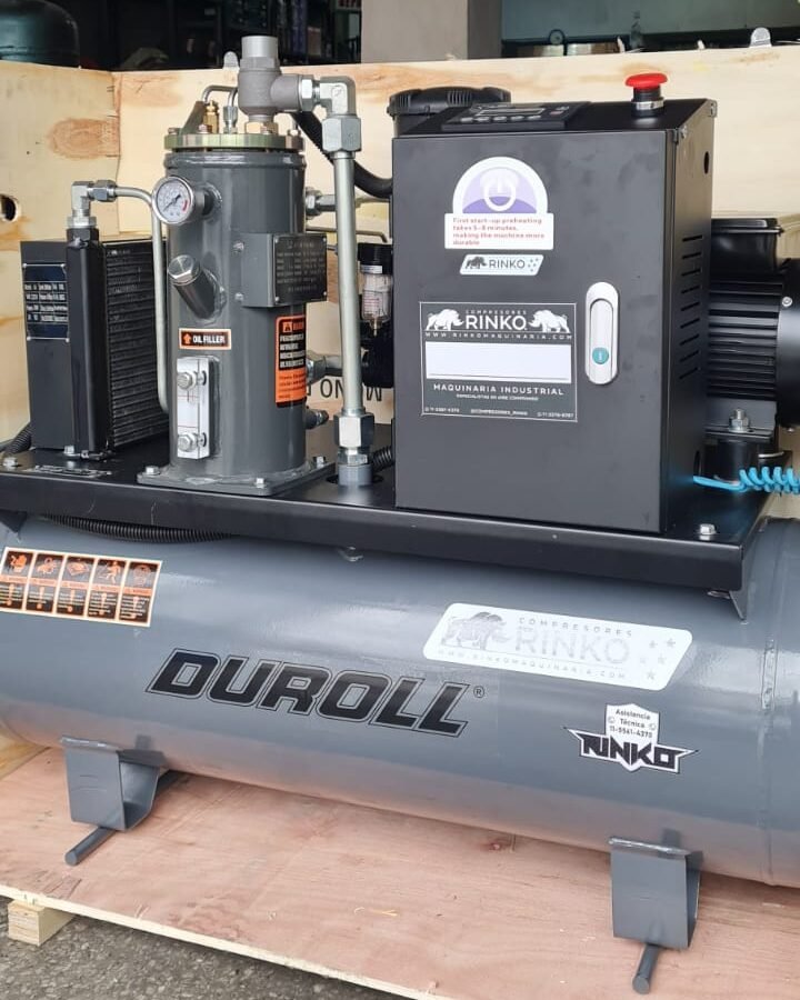 El compresor a tornillo DUROLL 10 hp está diseñado para uso industrial y trabajo continuo, brindando aire comprimido estable, eficiente y confiable. Su motor de frecuencia variable y transmisión directa permiten reducir el consumo eléctrico y mejorar la vida útil del equipo.